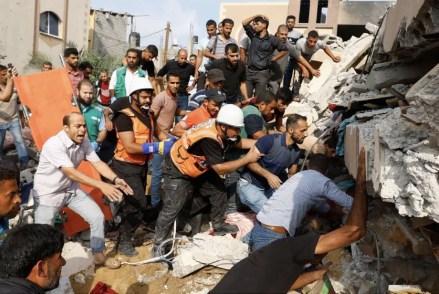 Fuente: Ibraheem Abu Mustafa/Reuters Palestinos buscan sobrevivientes tras bombardeo en Khan Younis, localizado al Sur de la franja de Gaza.