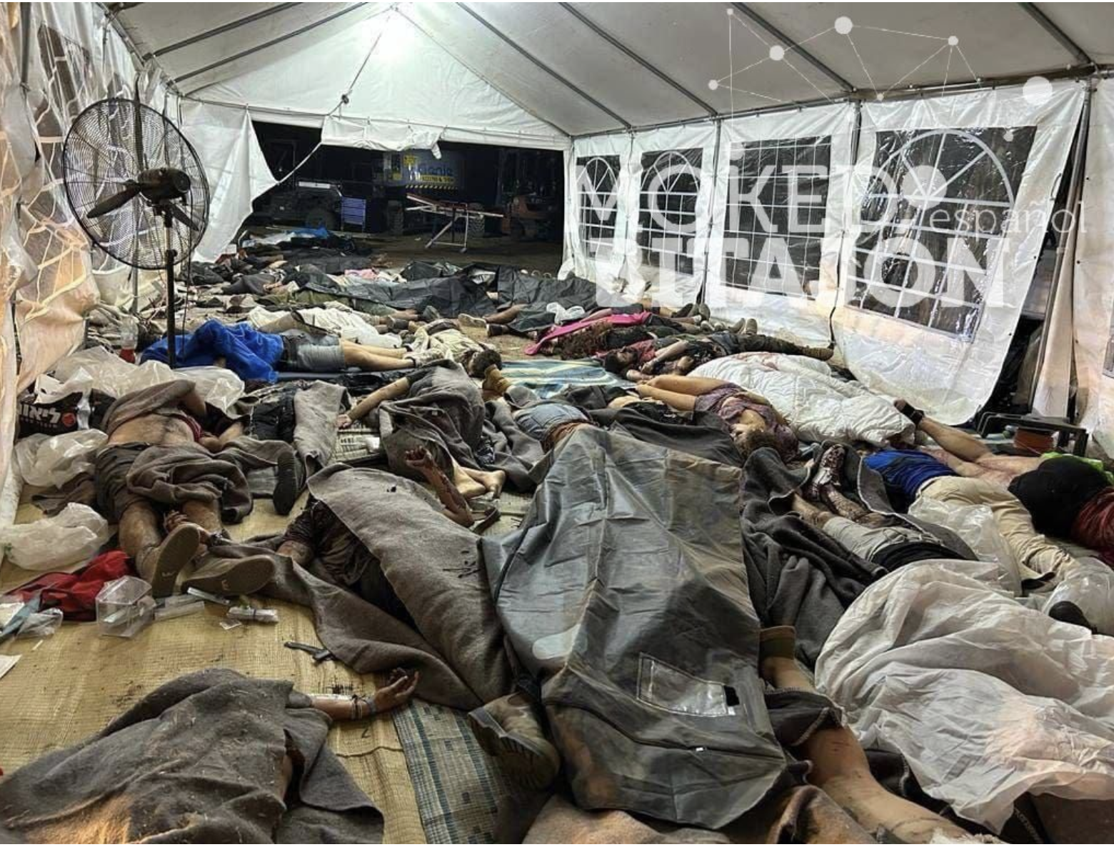 Fuertes imágenes de civiles muertos han comenzado a poblar las redes sociales, mostrando que las bajas son mayoritariamente civiles. La siguiente fotografía muestra los caídos en Israel el día de ayer, en el desarrollo de una fiesta particular, que muestra la incomprensión del ataque centrado a población ajena al conflicto.